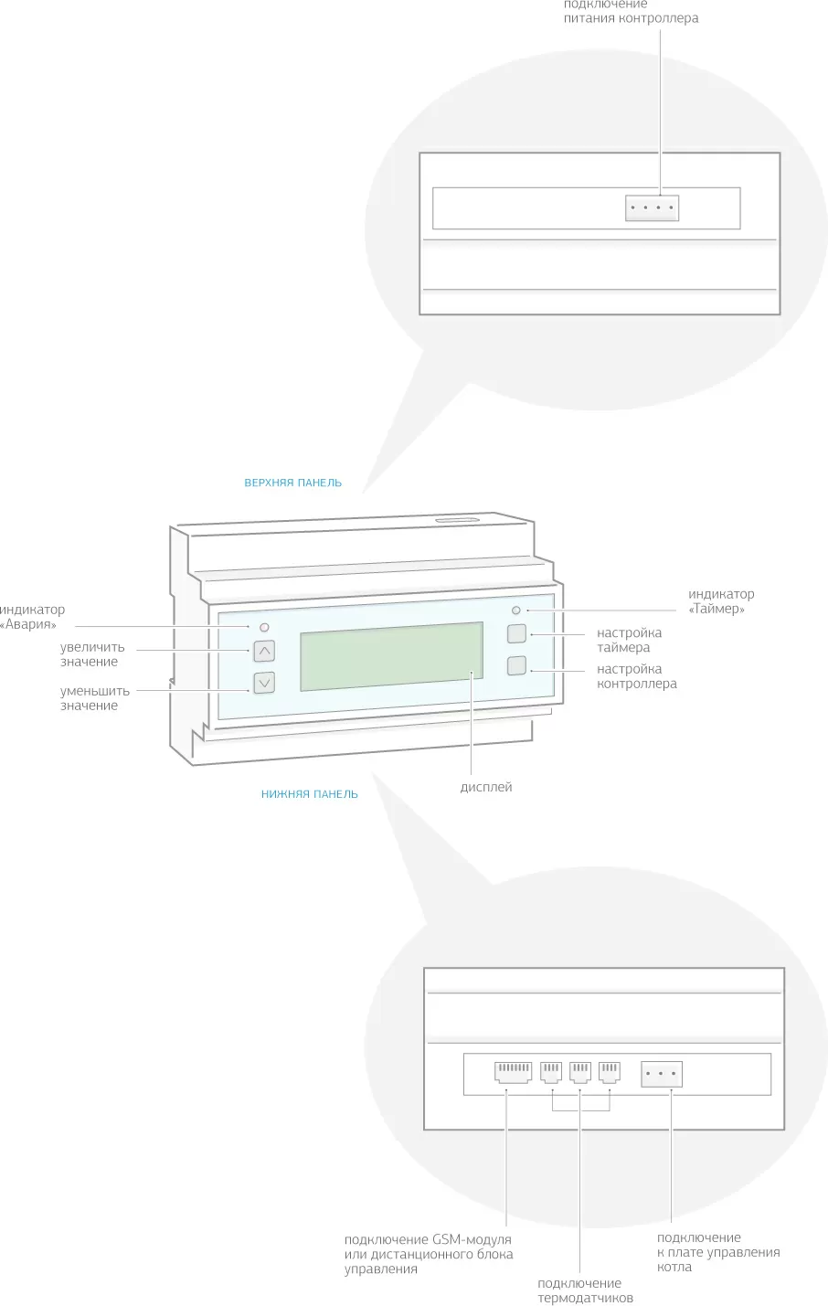 - Максимальная t° теплоносителя — для дополнительной защиты котла от перегрева;