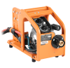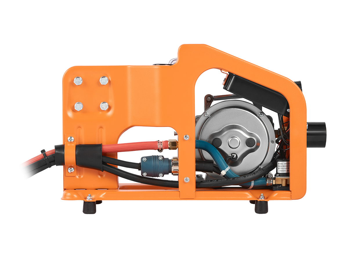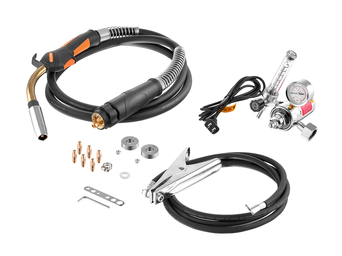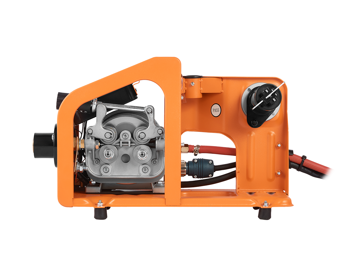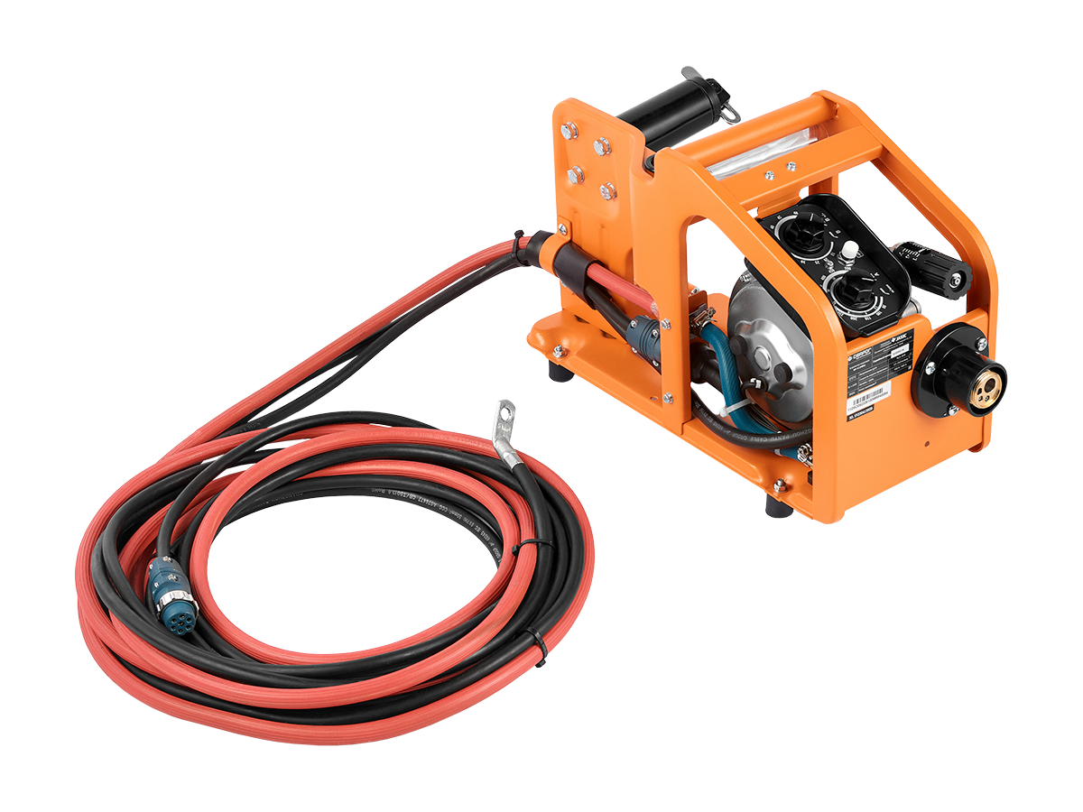 Аппарат комплектуется отдельным 4-х роликовым подающим механизмом. Благодаря такой конструкции можно разместить источник питания на значительном удалении от места сварки, облегчая вес горелки и снижая нагрузку на сварщика. Четыре ролика гарантируют отсутствие проскальзывания порошковой проволоки и равномерную подачу даже при работе на длинных рукавах (до 30 метров и более).